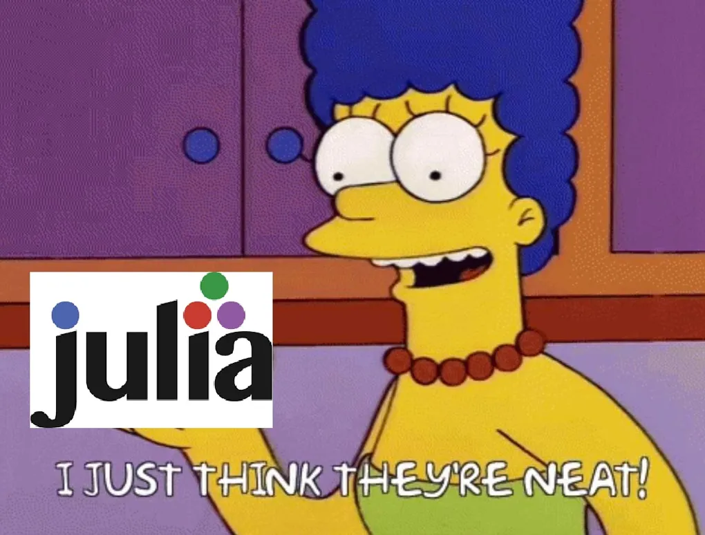 The great thing about Julia being a general purpose language, is that if you would one day need to write some actual software, like an HTTP server, or a webscraper to turn some text into an epub for easy reading on an e-reader, you can just do that. No need to learn any other language, it does everything! Does this mean you should use it for everything? Well, no. But this blog post is also not aimed at people who write comprehensive backends for large scale software. It’s for those of us who mostly need an oversized calculator, who may occasionally want more.